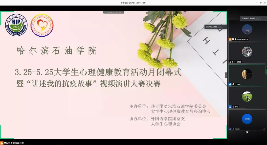 活动伊始,主持人带领大家回顾了两个月中各二级学院开展的系列活动,心理中心和各二级学院共开展系列活动40余场,活动参与人数达到3000人次,充分展现了伟德官网对心理健康教育工作的重视和广大哈油学子健康的心态与积极向上的精神风貌,随后“讲述我的抗疫故事”视频演讲大赛决赛正式拉开帷幕 。各二级学院的同学经过紧张激烈的角逐后,也终于决出名次。至此,伟德bv国际体育“3.25-5.25大学生心理健康活动月”圆满落幕。