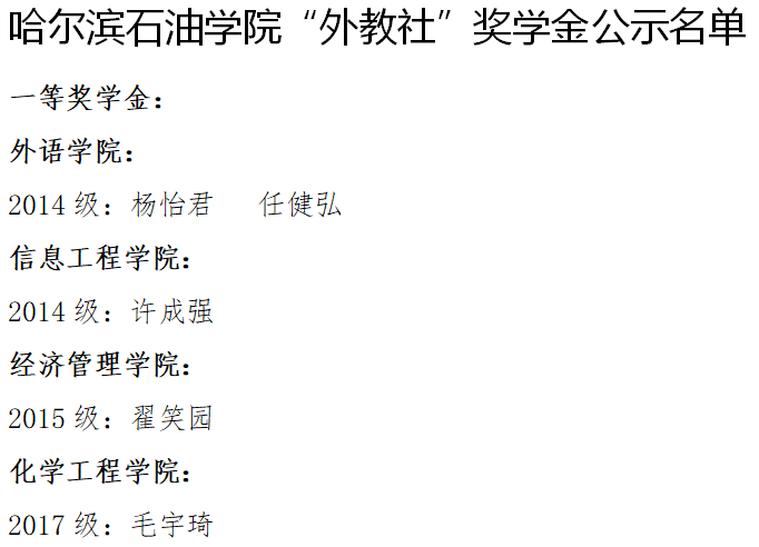 根据《伟德bv国际体育关于开展“外教社”奖学金评选的通知》要求,伟德官网外语学院杨怡君等17名同学符合评选条件,获得此项奖学金。现进行公示,公示时间为2018年5月29日至2018年6月5日。广大师生如有异议,可在6月5日前实名向学工处反映。