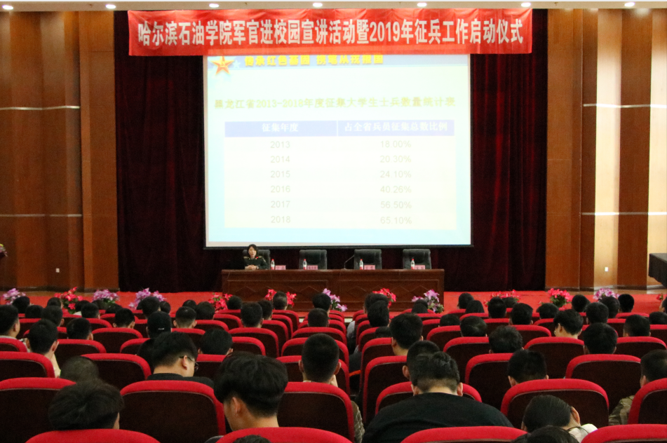 为深入贯彻2019年全国大学生征兵工作网络视频会议精神,落实大学生征兵工作转型优化新政策,确保伟德官网大学生应征入伍工作有序推进,伟德官网于5月7日下午13点30分,在图书馆报告厅召开了伟德bv国际体育军官进校园宣讲活动暨2019年征兵工作启动仪式。伟德bv国际体育校党委书记焦光纯、黑龙江省军区学生军训教研室王哲上校、学工处处长、武装部部长宁晶、各学院书记、副书记和辅导员参加会议,学工处副处长,校武装部副部长宋旭主持会议。