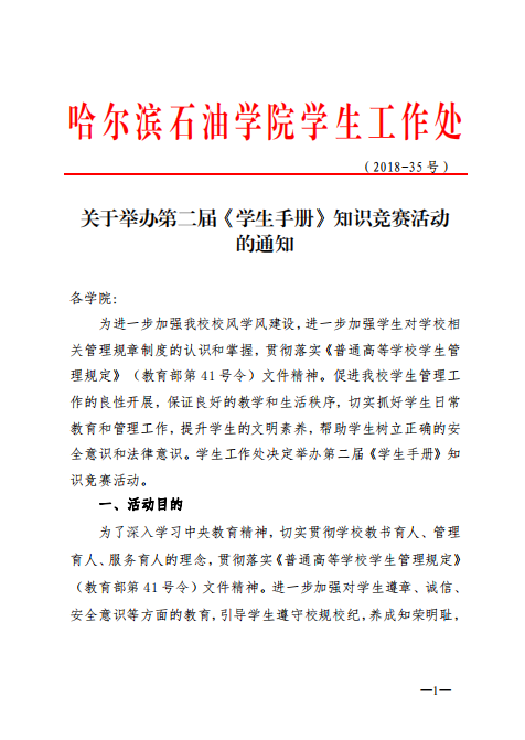 关于举办第二届《学生手册》知识竞赛活动的通知
