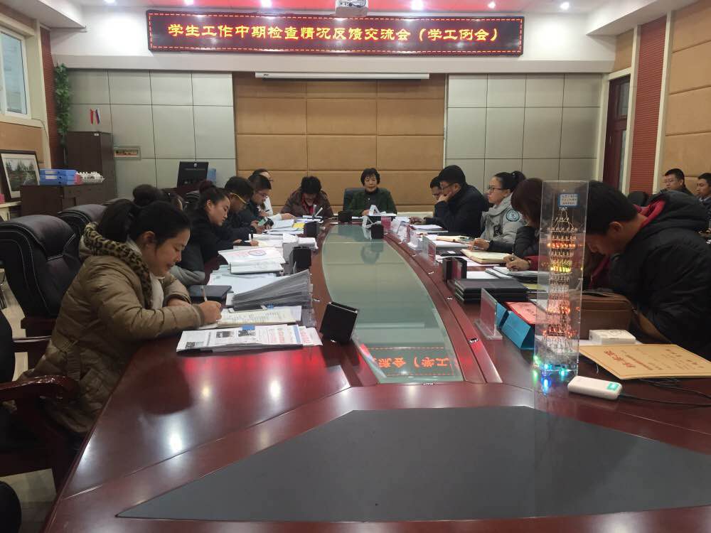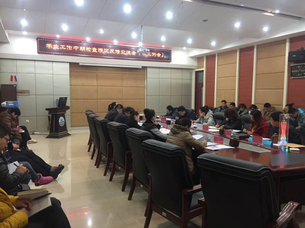 11月9日上午9时,学工处组织召开了《2016-2017学年第一学期学生工作中期检查情况反馈交流会》,校党委副书记、副校长栾敏、学工处团委全体以及各二级学院党总支书记、副书记、辅导员参加了会议。 会上,各二级学院党总支书记、副书记分别就本学院学生工作中期自检自查情况进行了汇报,部分学院还成立了自检自查小组,对学生工作取得的成绩进行梳理、总结,并提炼出特色工作、优秀经验,对存在的问题进行深刻的剖析,并提出整改措施。此外,各学院还介绍了本学院特色工作开展情况,推广了好的工作方法、工作经验并对学生工作提出了中肯的意见和建议。