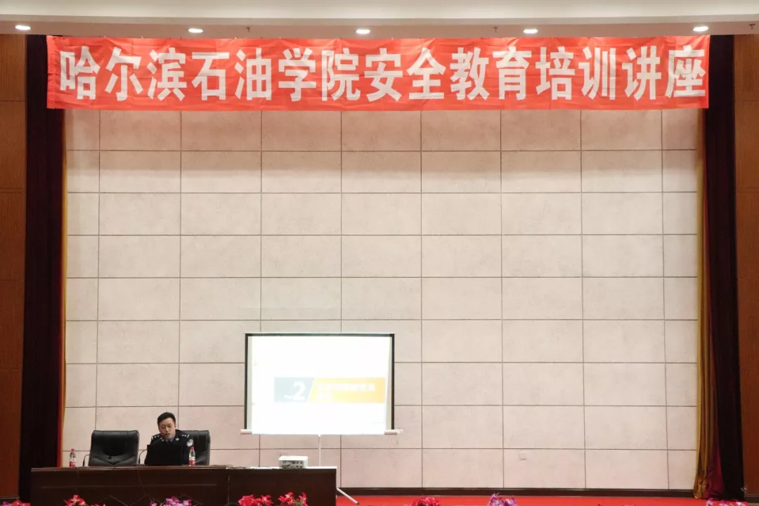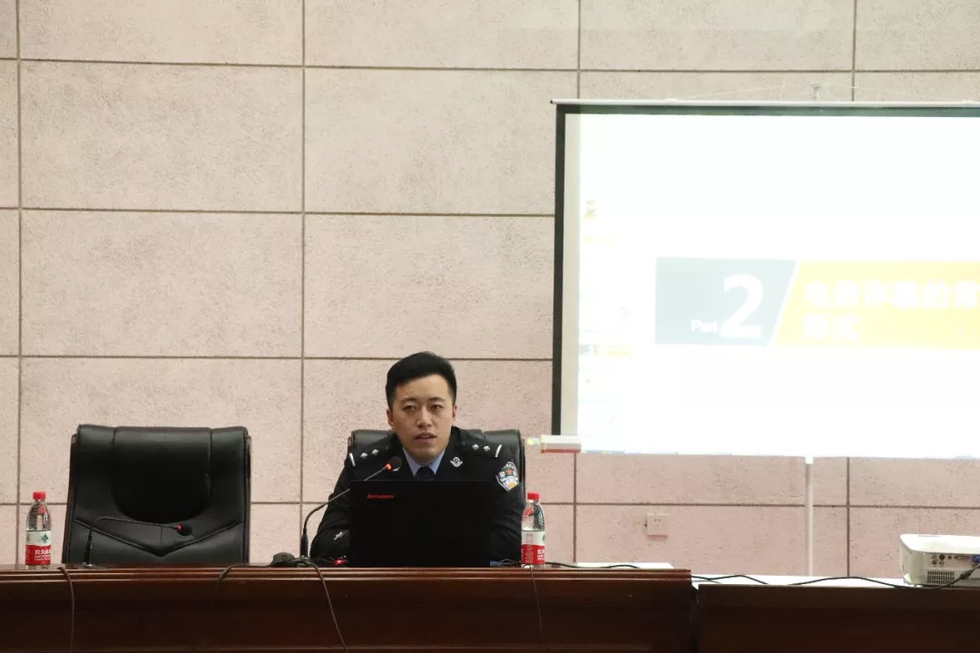 首先,松北区公安分局政治部郝帅警官向学生讲解了防盗、防骗等方面的问题。他通过列举高校真实案例、播放典型案例视频等方式,指出了大学生防骗、防盗意识淡薄,希望同学们注意宿舍防盗和电信诈骗等,时刻保持警惕。同时,他还向同学们介绍了遵纪守法、运用法律知识维护自己的合法权益等知识,希望同学们能够用实际行动,真正做到遵纪守法,成为一名文明、健康、有为、诚信的大学生。