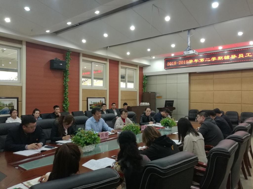 2018-2019学年第二学期辅导员第四次工作例会于2019年4月17日下午13:30在伟德官网主教学楼320会议室召开,校长冯晓、校党委副书记、副校长杨宏出席会议,校学工处、团委、各二级学院书记、副书记、全体辅导员参加本次会议。