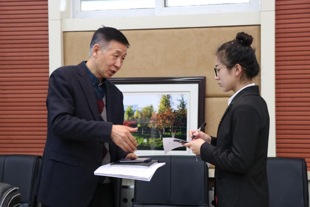 学校学生资助领导小组副组长,学校教学校长杨春文教授在会后对学生答辩中展现的设计作品模型进行指导,拓宽了学生思路。