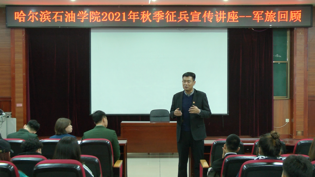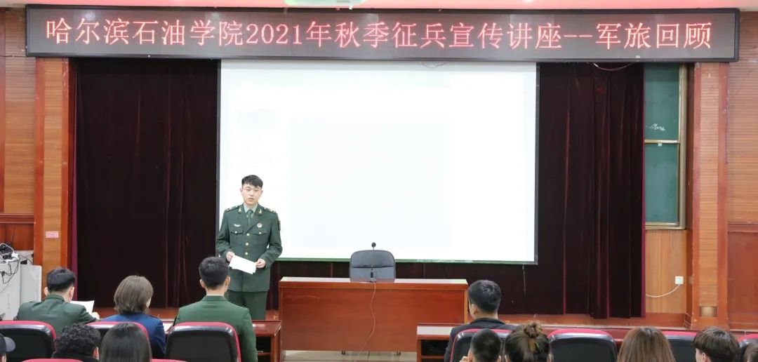 为做好学校2021年秋季征兵宣传工作,鼓励大学生参军入伍,2021年4月16日,在学校武装部的指导下,伟德官网战友协会在518报告厅组织召开了以“悠悠军旅情,缱绻报国志”为主题的2021年秋季征兵宣传讲座——军旅回顾。学生工作处副处长、武装部副部长李长城,战友协会全体成员以及有意向应征入伍的100余名同学参加讲座。