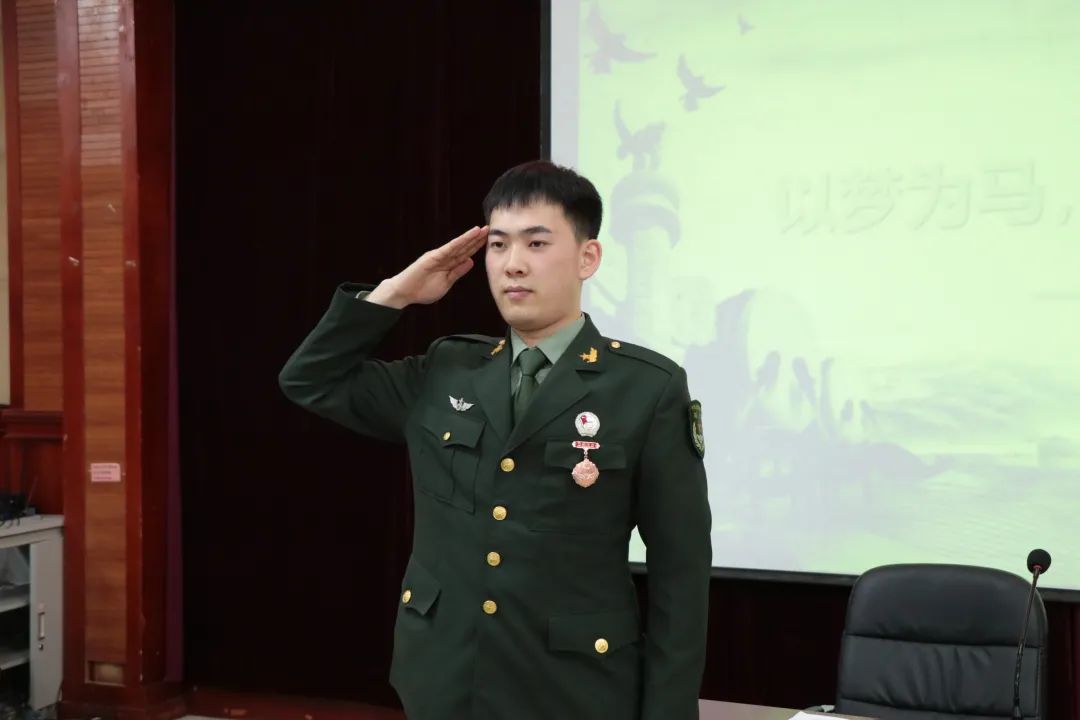 信息工程学院退役大学生庞凯泽以“男儿有梦,志在四方”向同学们讲述了梦想与家国情怀共同实现的青春年华。