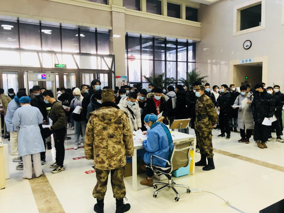 体检现场,学校参加体检的同学严格落实常态化疫情防控要求,遵守松北区武装部各个环节进行周密安排,流程规范、秩序井然。