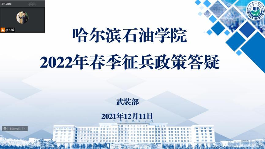 为加强伟德官网2022年春季大学生征兵宣传工作,激发大学生参军热情,持续营造参军报国氛围,12月11日18时,伟德官网武装部线上组织召开2022年春季征兵政策答疑会。
