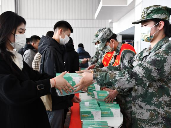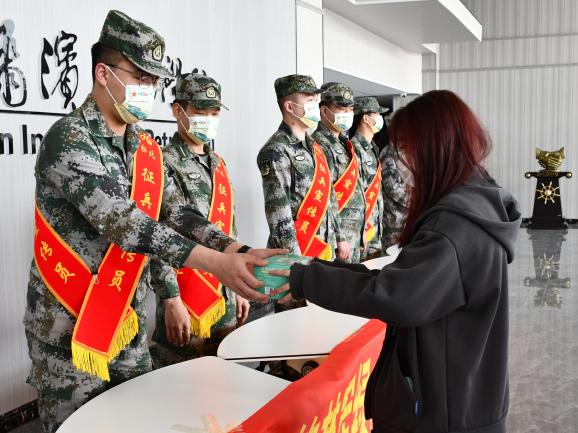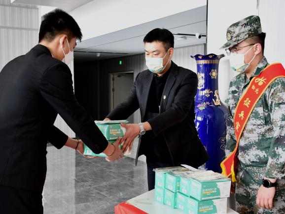李长城老师和战友协会成员向百余名励志参军优秀青年代表赠予9000片印有“强军有我龙江兵”标语的防疫口罩,要求大家将口罩和征兵的优待政策传递给身边的每一名同学,争做一名合格的征兵宣传员。