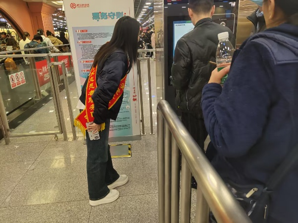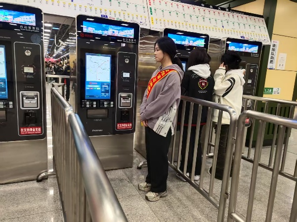 活动当天,地铁站内人潮涌动。志愿者们迅速融入其中,积极协助工作人员引导乘客依规安检,使安检秩序井然,有效提升了通行效率。看到自动售票机前有乘客面露困惑,志愿者们主动上前,耐心讲解购票步骤,还细心告知线路走向和换乘信息。志愿者们随时为乘客答疑解惑,及时处理票务异常,保障乘客快速通行。此外,志愿者们还积极宣传文明乘车理念,倡导乘客遵守秩序、爱护环境。