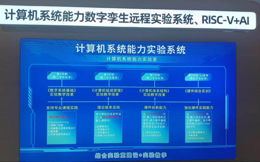 本次高博会聚焦高等教育领域前沿动态,为高校、企业与科研机构搭建交流合作平台。鲍庆鹏主任重点关注计算机技术发展与人工智能前沿趋势,在“计算机系统能力数字孪生远程实验系统、RISC - V + AI”方面,先进的实验设备与创新的教学理念令人眼前一亮。