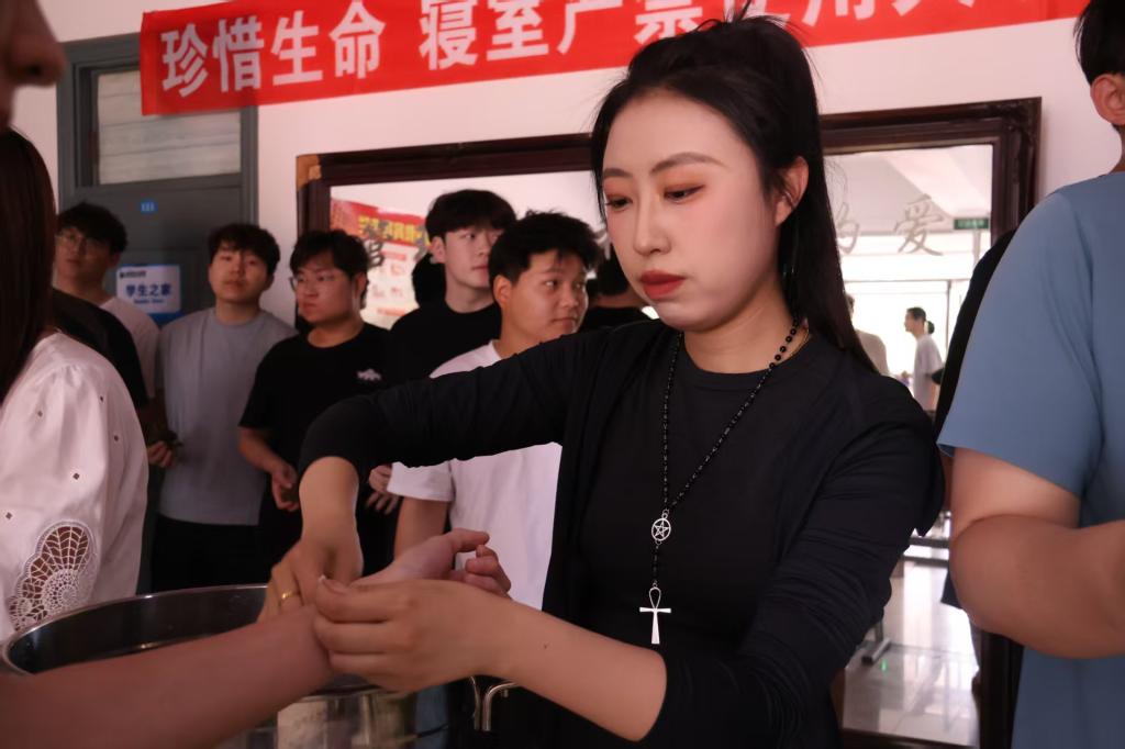 在送礼物的同时,志愿者们还与同学们分享了端午节的传统习俗,如赛龙舟、挂艾草等,让同学们更深入地了解端午文化的内涵。一些同学当场就将五彩绳系在手腕上,脸上洋溢着幸福的笑容。