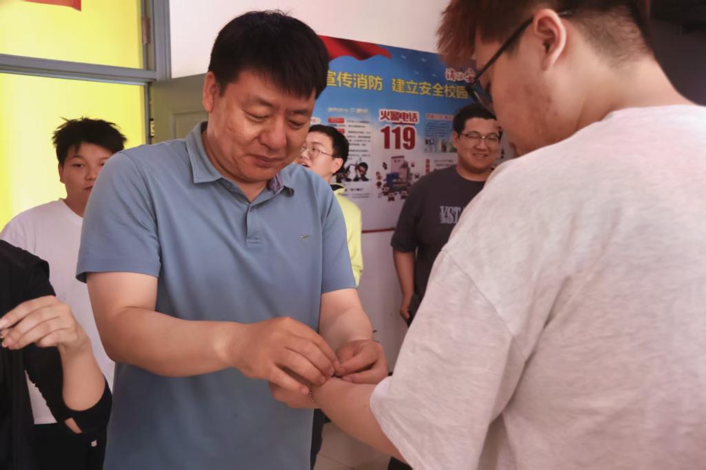学院领导与辅导员们将礼包亲手递到同学们手中。"端午节安康!""复习要注意劳逸结合"......声声问候中,老师们还特别讲解了五彩绳"驱邪纳吉"的美好寓意,叮嘱同学们佩戴至端午后第一场雨,让传统习俗焕发新时代的生机。