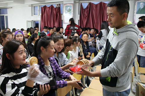 喜庆开场舞表演拉开了整个晚会的序幕,校园歌手的倾情演唱、小品演员的诙谐幽默、悠扬的电子琴独奏、深情满怀的朗诵一次又一次把晚会的气氛推向高潮,赢得了观众们的热烈掌声和阵阵笑声。在此次文艺演出后,张宏鹏老师和学生会主席团为在场的每位同学发月饼,现场充满着满满幸福感与节日感