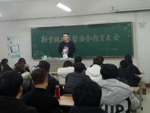 信息工程学院于3月7日召开了“新学期动员暨安全教育”大会,由信息工程学院团总支书记张宏鹏和17级辅导员黄家政主持,15、16级学生会成员以及17级全体学生参加会议。
