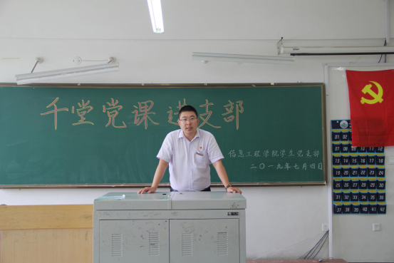为深入学习贯彻习近平新时代中国特色社会主义思想和党的十九大精神,庆祝中国共产党成立98周年,7月4日,信息工程学院于二教405召开以“千堂党课进支部”为主题的党支部大会。会议由党总支书记毛雷同志主持,与会成员有:学生党支部书记黄家政,团总支书记张宏鹏及信息工程学院全体学生党员。