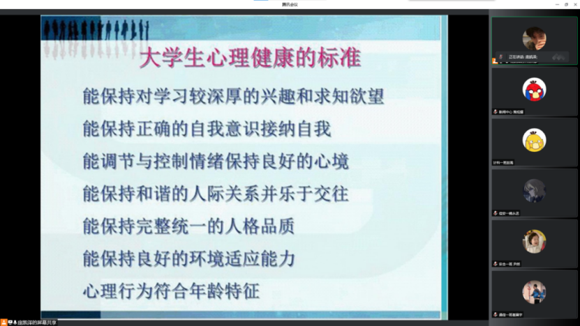 会议中,主持人庞凯泽向各班心理委员就心理委员的责任与工作,进一步作出了讲解,明确了心理委员承担或协助实施针对班级心理健康教育的各类事务的重要职责,同时以课件的形式,由多维度的方面并结合实际案例同大家直观展现了负面心理所带来的危害,引人深思,防微杜渐。随后,各班的心理委员在会议中展开了积极探讨,针对如何有效缓解同学之间的不良情绪、如何有效合理地寻求疏导心理方式等一系列问题进行了良好交流,并纷纷将自己在心理委员工作当中所总结得来的技巧与方法相互分享讨论。