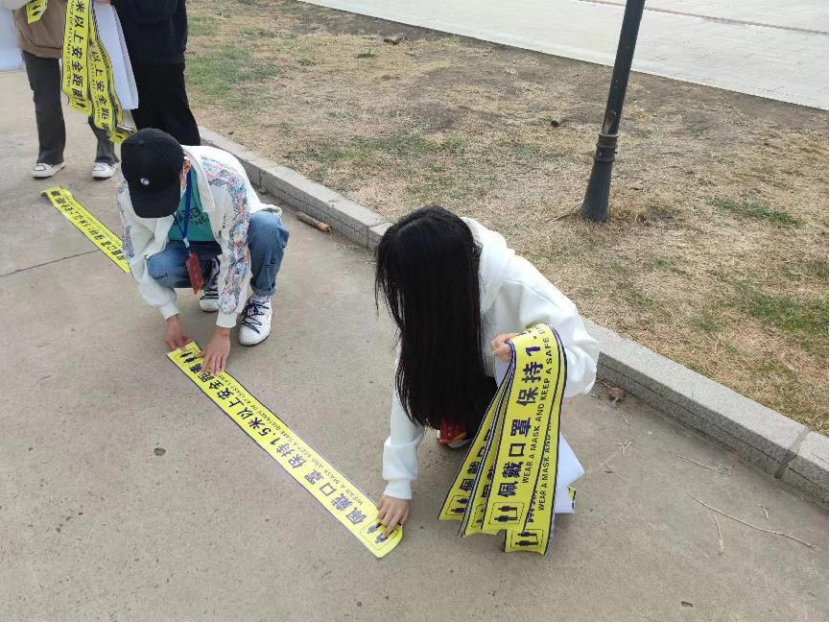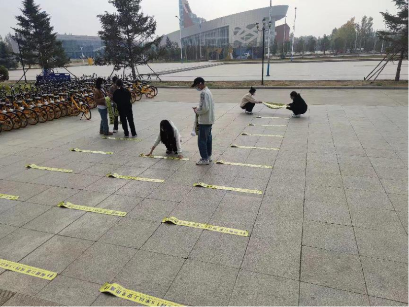 活动现场,为积极配合我院校园日常防疫工作的成功开展,有序组织学生群众核酸检测事宜,我院学生会干部纷纷投身于办实事活动当中,并通过粘贴核酸检测距离的贴纸展开了此次活动的帷幕;活动中,我院广大学生干部深刻体会学习到,群众路线是建设优秀校园文化氛围的根本路线,为人民服务是我院工作开展的根本宗旨。