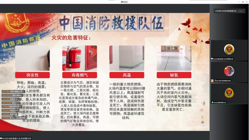 活动中,黑龙江省哈尔滨市松北区消防救援大队宣传员刘教官,通过形式多样的幻灯片及真实案例讲诉,为我院2022级大一新生上演了生动的消防安全及法制宣传的知识教育讲座,通过详细地介绍常用消防器材的使用及相关知识、火场逃生的小知识、火灾的危害特征、火灾应急处理的基本原则、火灾分类等多方面的话题,让我院2022级新生学子深刻的认识到关注消防、珍视生命的重要性,在也学习到如何在最佳时刻扑灭初期火灾和自救逃生的消防知识,也加强了我院学子做好火灾预防工作的重要意识。