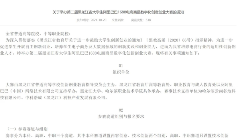 由黑龙江省普通高等学校创新创业教育指导委员会主办,黑龙江省教育厅高等教育处、职业教育与成人教育处以及阿里巴巴(中国)网络技术有限公司支持举办,黑龙江大学、哈尔滨职业技术学院具体承办的“第二届黑龙江省大学生阿里巴巴1688电商商品数字化创意创业大赛”圆满落下帷幕,本次大赛中,开放创新实验室参赛团队,以高质量的项目内容,与来自省内的东北石油大学、东北农业大学和黑龙江科技大学等高校争夺奖项,最终进入决赛,荣获佳绩。