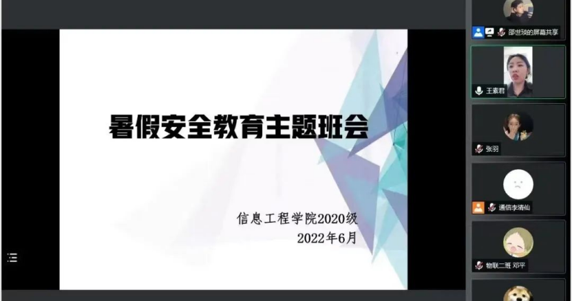 为进一步贯彻落实我院各项工作的开展,加强校园管理,强调树立安全意识、严肃考风考纪、树立良好的学习风气等问题,引领我院青年学子积极树立良好的社会风气、树立健全的人格品德,6月8日至10日,信息工程学院各年级辅导员组织召开了考风考纪动员大会暨暑假安全教育主题班会。