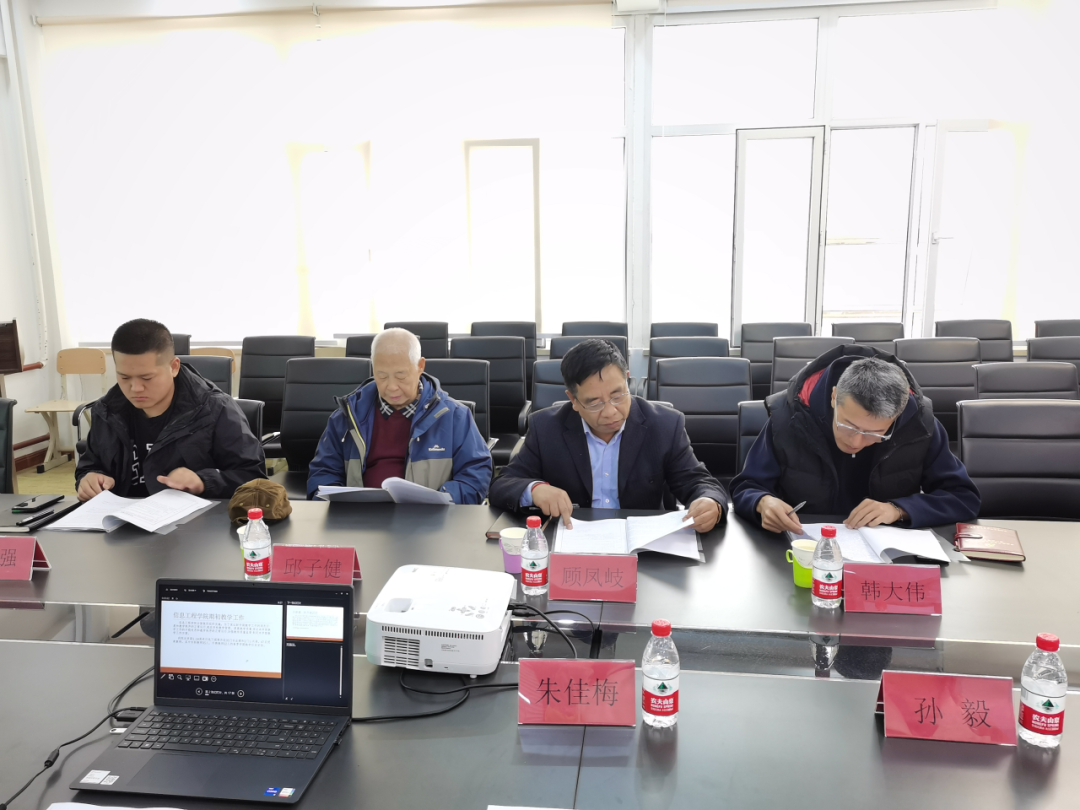 2023年10月18日下午,教务处处长顾凤岐、副处长韩大伟、教务科科长文强、教学质量监控与评估中心副总督学邱子健老师莅临信息工程学院对期中教学检查工作进行指导。院长朱佳梅、副院长鲍庆鹏、副院长孙毅、教学秘书姜威参加本次检查工作,对领导的到来表示热烈的欢迎。
