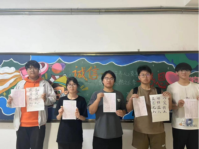 为提升我院广大学子的人文素养,培养同学们的诚信道德理念,弘扬诚信立身、感恩养德、励志强心的思想。6月8日,信息工程学院于二教四楼组织开展了以“诚信、感恩、励志”为主题的书法展,我院22级同学全体参加。