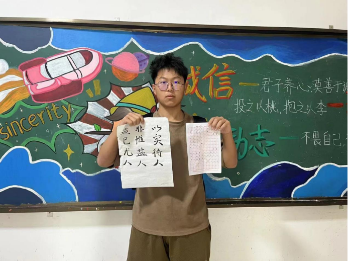 活动中,我院22级的同学们积极参与其中,同学们认真写下每一个笔画、每一个汉字,通过书法将“诚信、感恩、励志”进行了深度的诠释。在展示书法丰富的艺术内涵的同时,也给烘托了“诚信、感恩、励志”的精神体现。