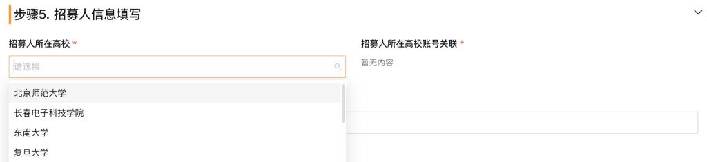 请注意,在最后填写招募人信息时,务必选择正确学校,这样中小学生的信息才会进入本校管理后台。