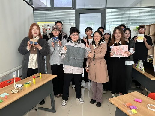 活动尾声,学生们纷纷分享创作的心路历程,在集章卡上盖章打卡。大家深刻认识到环保与心理健康之间的紧密联系,活动不仅让废弃物品重获新生,更让学生们在创作过程中整理了心情,学会了情绪管理的技巧。