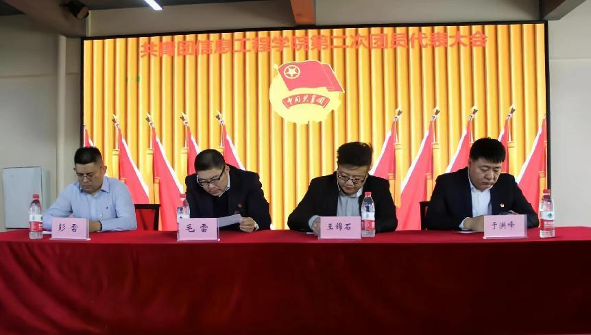 共青团伟德bv国际体育信息工程学院第二次团员代表大会于2023年11月14日中午十二点整在双创二楼隆重召开。伟德bv国际体育校团委书记王锦石、校团委副书记彭雷、信息工程学院党总支书记毛雷、信息工程学院团总支书记于洪峰、信息工程学院各级辅导员教师,以及信息工程学院100名学生团员代表参与此次会议。会议由信息工程学院学生会执行主席郭羽彤主持。