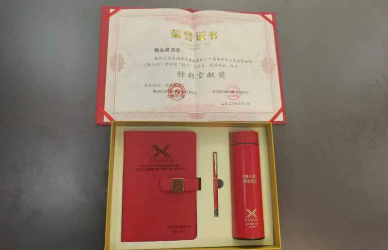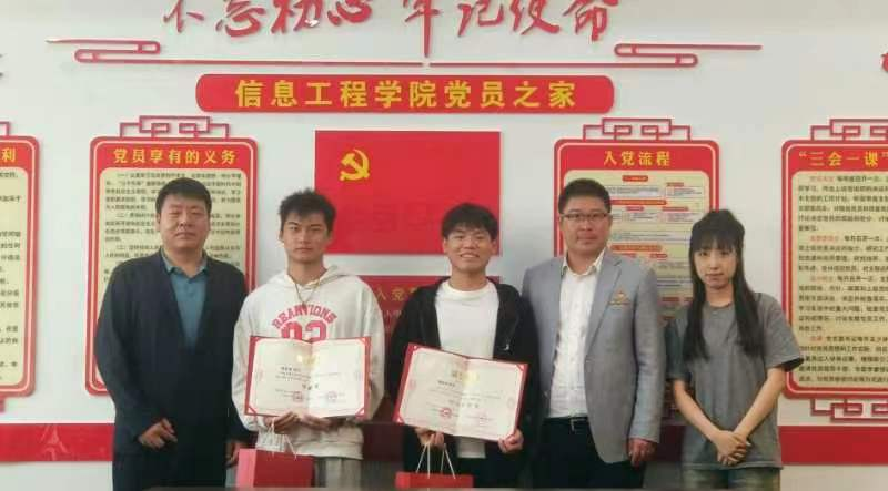 为庆祝伟德bv国际体育建校二十周年,伟德官网特组织策划了大型情景剧表演《铁人颂》。9月22日,信息工程学院党总支书记毛雷于二教四楼会议室对我院参演的僧永硕、胡俊祺两位同学进行了表扬和鼓励,并颁发了奖状和纪念品。