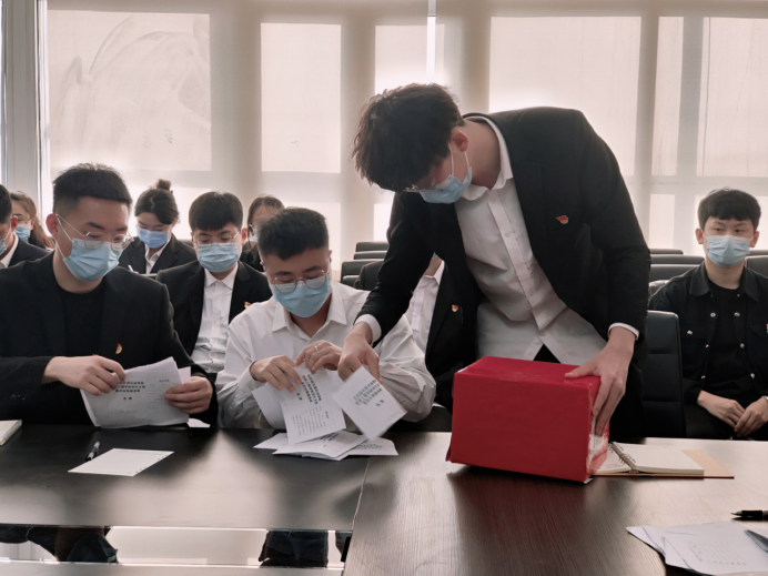 学生支部委员会换届成功后,五名成员第一时间召开了支委会来选举学生支部书记和副书记,最终通过无记名投票方式选举出支部书记由王素君同志担任、支部副书记由宋楠楠同志担任。
