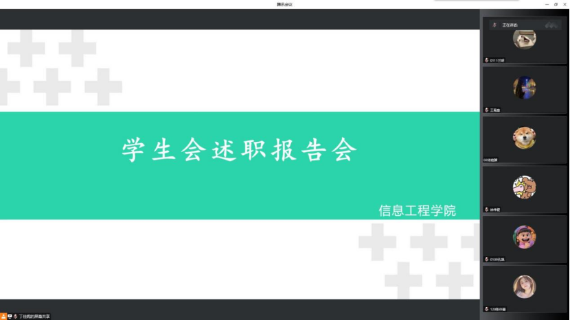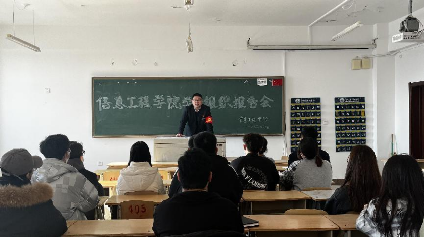 为加强对党的二十大精神的学习和理解,进一步规范和加强我院学生组织管理体系,提高我院学生组织的组织建设,调动学生组织干部在各项活动的积极性和主动性,促进学生组织工作的顺利开展。信息工程学院党总支书记毛雷、信息工程学院团总支书记王素君,于11月7日中午十二点整在二教409教室以线上线下相结合的方式组织开展了学生组织述职报告会。信息工程学院学生组织主席团成员以及各部门负责人参加本次会议。