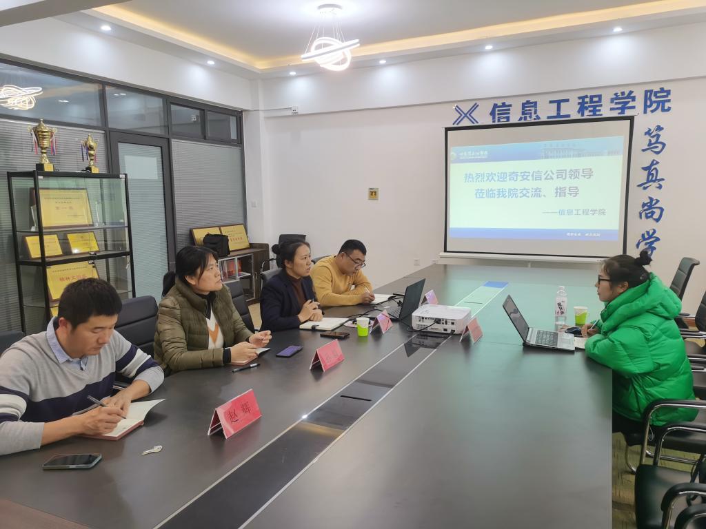 2023年11月6日下午,奇安信科技集团股份有限公司经理闫军霞莅临学院,院长朱佳梅、副院长鲍庆鹏、副院长孙毅、信息工程专业教师赵辉对闫军霞经理的到来表示热烈的欢迎,共同开展本次交流会议。奇安信集团是中国网络安全公司之一,专门为政府、企业,教育、金融等机构和组织提供企业级网络安全技术、产品和服务,已覆盖90%以上的中央政府部门、中央企业和大型银行,已在印度尼西亚、新加坡、加拿大、中国香港等国家和地区开展了安全业务。