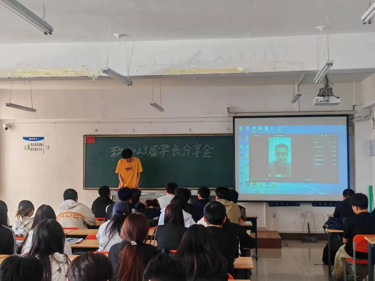 之后还有往届就业学子经验寄语:播放了部分往届毕业生录制的工作和学习经验,在视频中往届优秀毕业生提出了学习的方向并对23届物联网学生进行了寄语。