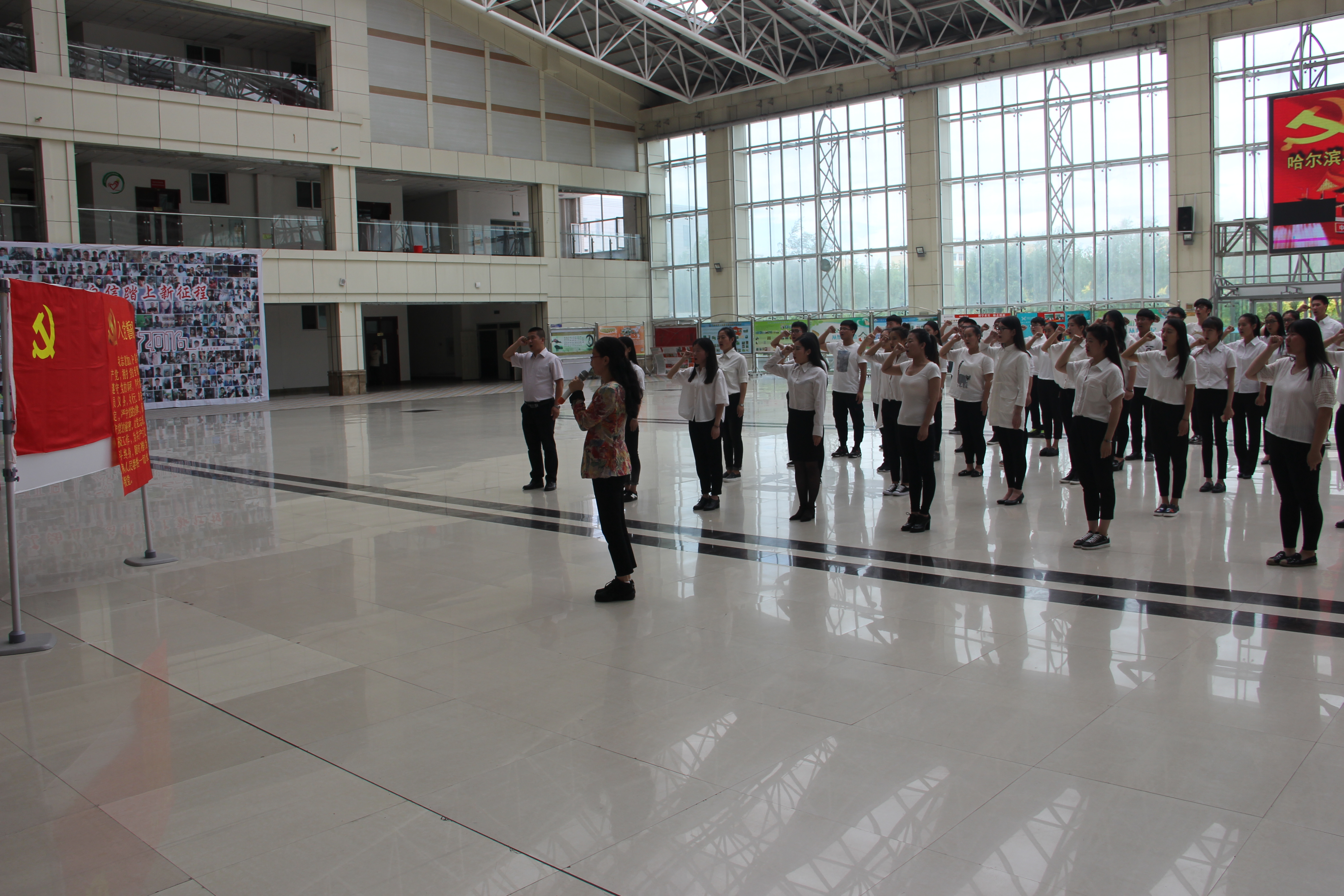 为庆祝中国共产党建党95周年,讴歌党的丰功伟绩,激励广大党员牢记使命,更好的发挥党员先锋模范作用,6月24日,伟德bv国际体育党委在主教学楼阳光大厅召开入党宣誓大会。