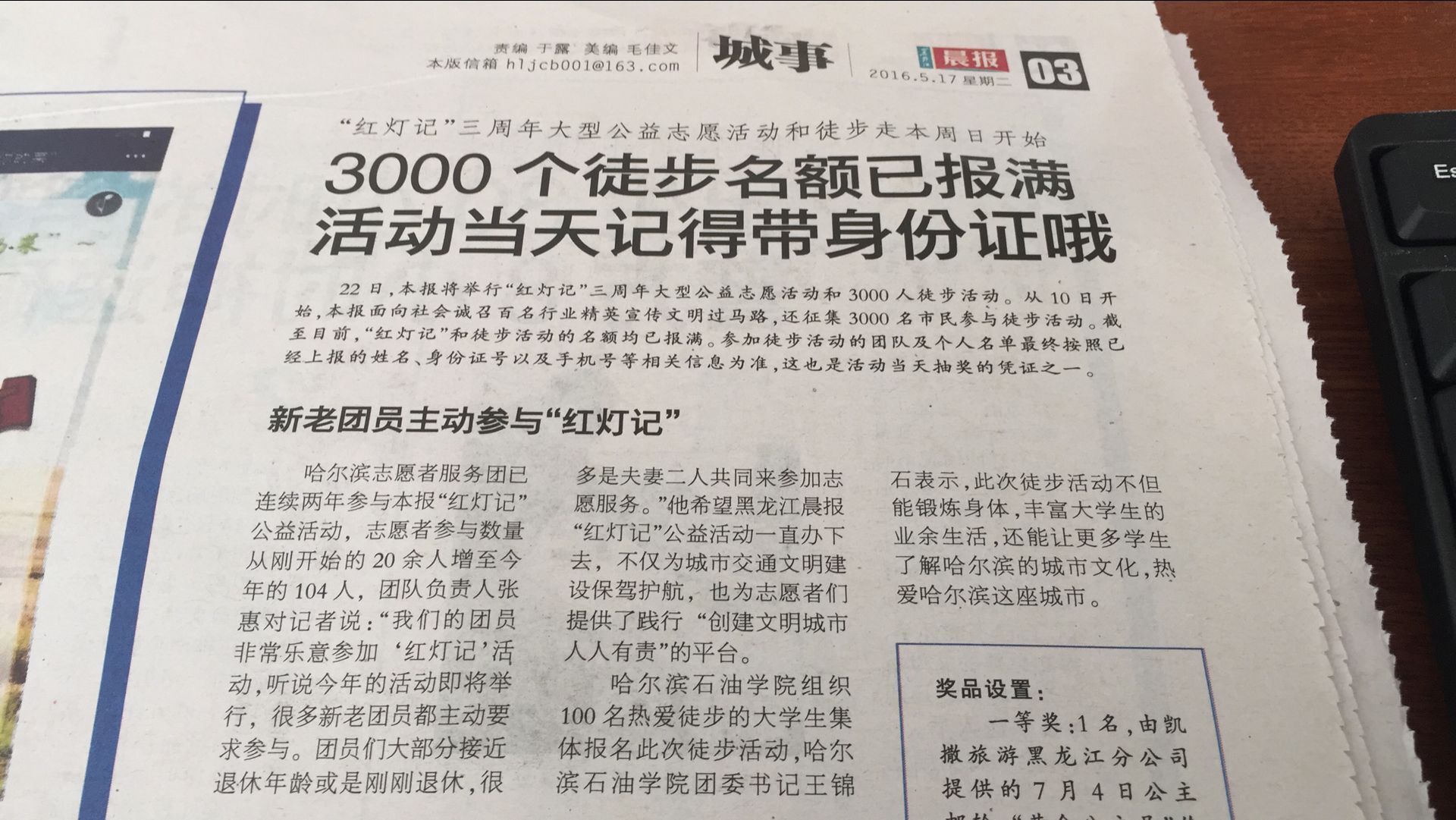 5月22日,黑龙江晨报举行“红灯记”三周年大型公益志愿活动和徒步活动。