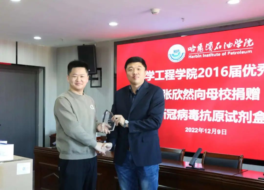 12月9日上午,新冠病毒抗原检测试剂盒捐赠仪式在学校综合楼1515会议室举行。党委副书记、副校长冯研出席仪式,伟德官网2016届环境工程专业校友,黑龙江省乾佳科技有限公司总经理张欣然,向学校捐赠1200人份抗原检测试剂盒。