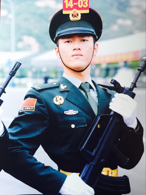 2014年9月参军入伍,新训期间参加团级军事比武,荣获“基础战术第二名”;2015年9月3日参加“中国抗日战争暨世界反法西斯战争胜利70周年”阅兵庆典,在阅兵训练中参加军区级比武,荣获“单兵队列动作优秀奖”、“阅兵勇士”勋章一枚、执行重大任务勋章一枚、习近平主席通令嘉奖一份。同年10月赴内蒙古朱日和训练基地参加“北剑1510S实兵对抗演习”,同年11月被派往新兵训练营担任新训教员;2016年9月退伍荣获“团级十佳退伍老兵”。