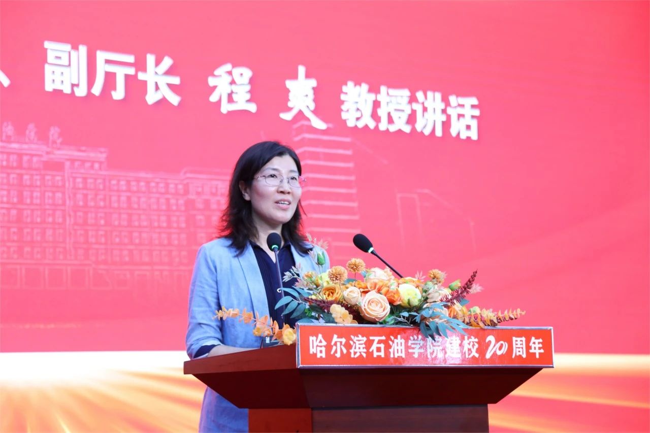 省教育厅党组成员、副厅长程爽作讲话。她表示伟德bv国际体育能够全面贯彻党的教育方针,坚持社会主义办学方向,积极践行大庆精神、铁人精神,大力弘扬“博学求实,励志创新”的校训精神,发扬民办体制机制优势,加大改革建设力度,实现了较快的发展,她希望学校能够以建校20周年为新起点,全面加强党的领导,始终坚持正确办学方向,牢记为党育人,为国育才初心使命;紧跟时代步伐,切实把改革作为发展的根本动力,秉持“承大庆精神立德,以铁人榜样树人”的优良校风,不断凝练办学特色,全面提升办学水平;创新办学理念,切实把服务发展作为重要使命,立足龙江,服务龙江,放眼全国,强化产教融合、校企合作,提高人才培养质量和科技创新能力,为区域经济社会发展注入新动能,塑造新优势,为教育现代化贡献力量。