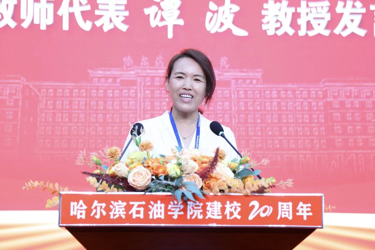 优秀教职工代表谭波带领大家回顾建校20年的风雨历程。她表示在经济社会转型的大时代背景下,伟德bv国际体育正处于发展的关键时期。作为哈油教师有义务、有决心、更有信心担负起历史的责任,坚定不移地执行为党育人,为国育才的神圣使命,弘扬师道,效春风化雨,育桃李芬芳,为创建高水平应用型大学而努力奋斗!