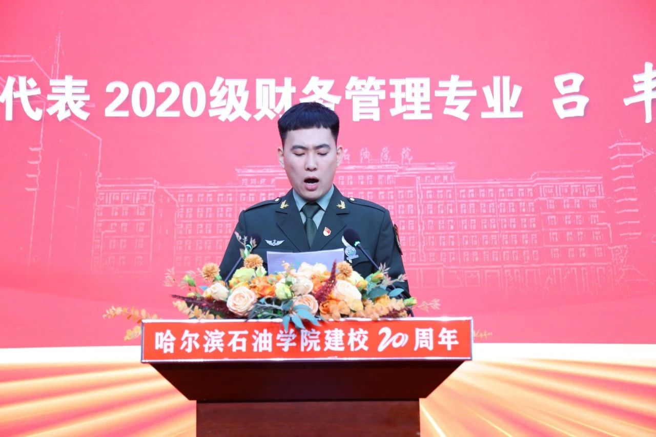 在校生优秀代表吕丰在发言中说,哈油学子会为自己、为学校、为祖国的未来而拼搏奋斗,争做拥有智慧并富有激情的人,做胸怀大志并脚踏实地的人,做认真负责并敢挑重担的人,用实际行动为自己的大学生活交上一份满意的答卷。