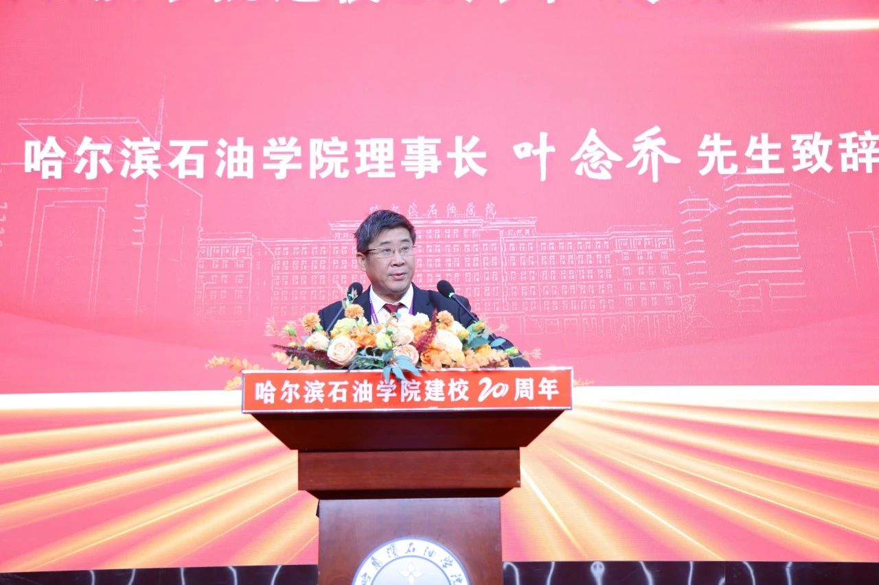 理事长叶念乔致辞。他代表学校理事会向伟德bv国际体育建校20周年表示热烈的祝贺!他表示:建校二十年来,伟德bv国际体育始终全面坚持党的领导。在教育部、省委省政府、省委教育工委、省教育厅、哈尔滨市和松北区政府等各级领导的大力扶持和悉心指导下,学校办学取得了长足的发展。学校今后将继续以“培养具有高度社会责任感、创新创业精神和务实作风的高素质应用型人才”为办学目标,以“立足地方和行业,学科专业群面向龙江主导产业、特色产业和战略新兴产业”为服务主体,进一步加强校企合作,发挥行业、企业在应用型人才培养过程中的重要作用,高举服务地方大旗,走实特色办学之路,办好人民满意教育,奋力书写学校服务龙江发展大文章,力争在龙江全面振兴全方位振兴的新征程中交出高分答卷。