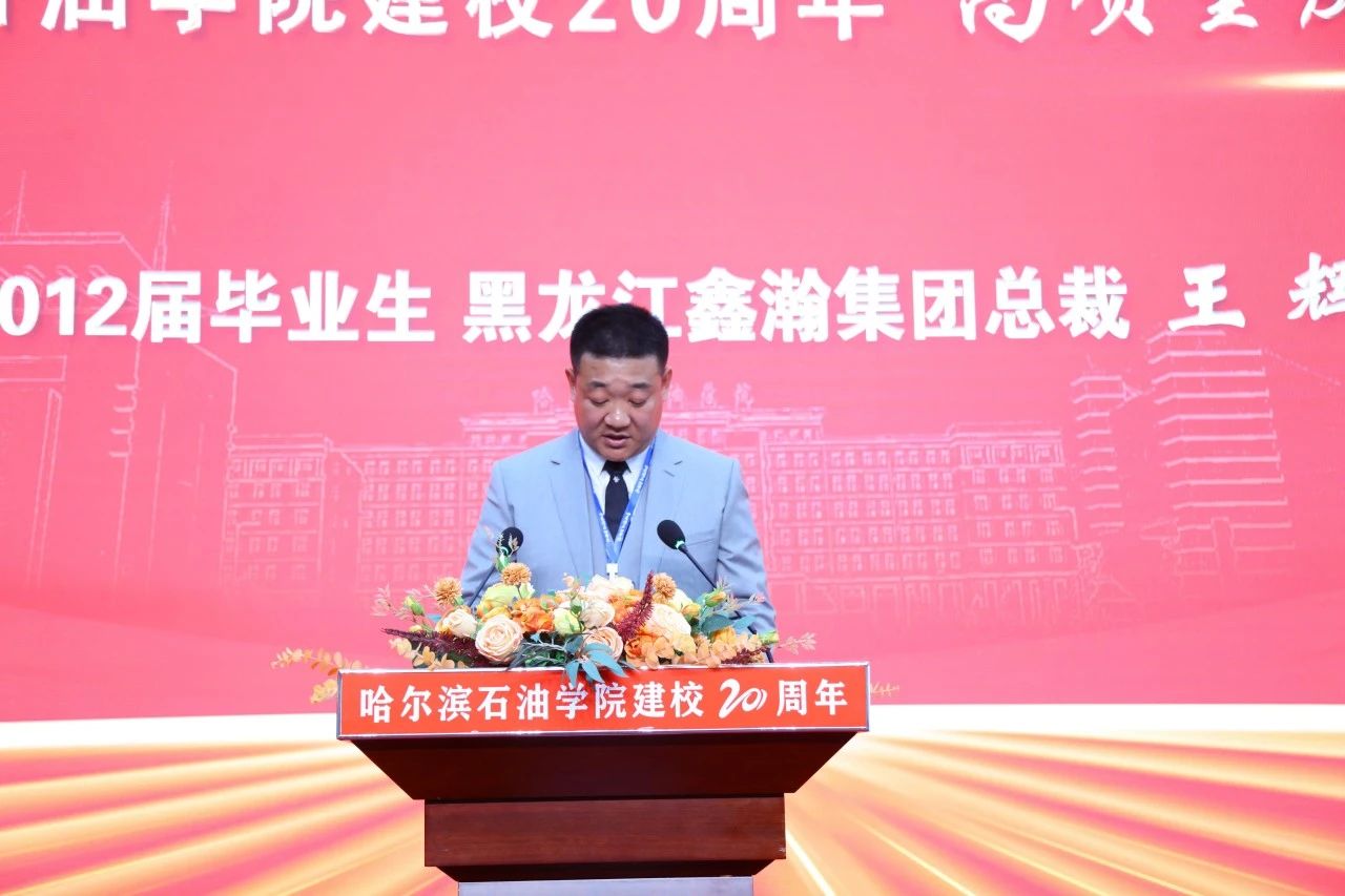 优秀校友代表、黑龙江鑫瀚集团总裁王辉深情回顾了在母校四年的青春岁月,他在发言中说伟德bv国际体育像是一个年轻人,在前进的脚步上充满着活力和激情,踔厉奋发,锐意进取,以前所未有的速度和动力发展着,祝福母校在新时代新征程上宏图更展。