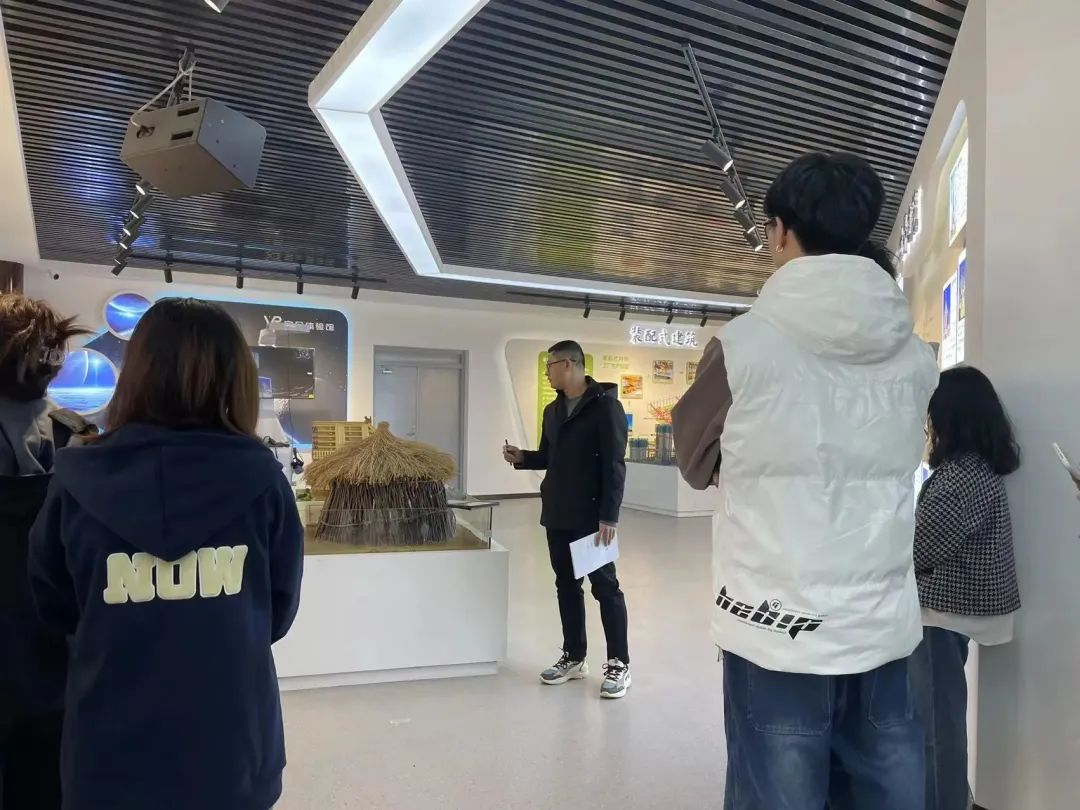 贾志强老师分别从文化展厅的几个板块给学生进行了讲解,首先是中国建筑,按照时间轴的顺序讲解中国建筑的起源半地穴式建筑到木结构建筑到高层建筑到场馆建筑等,通过时间轴讲解中国建筑的发展,增强学生的专业知识。之后是世界建筑,展示世界上比较著名典型性案例,了解世界建筑的发展变迁;接着是装配式建筑,通过装配式工厂展示,到装配式现场吊装,讲解装配式建筑建造过程。通过装配式案例让学生了解装配式建筑在中国的现状,装配式是建筑领域发展方向;四是安全文明工地,学生通过对安全标识学习到安全触电学习到安全文明工地布设.施工安全重于泰山,学生在学校对于施工现场细节的教学,也让学生有安全意识,之后的智能建造,以智能建造助力“中国建造”,智能建造在建造过程中充分利用智能技术,通过应用智能化系统提高建造过程智能化水平,达到安全建造的目的,提高建筑性价比和可靠性。我们通过对现有智能建筑机器人及现在建筑机械对比,展示智能建造中国现在的发展,之后又分别讲了BIM技术、智慧城市、海绵城市及穿越古今的道桥文化。