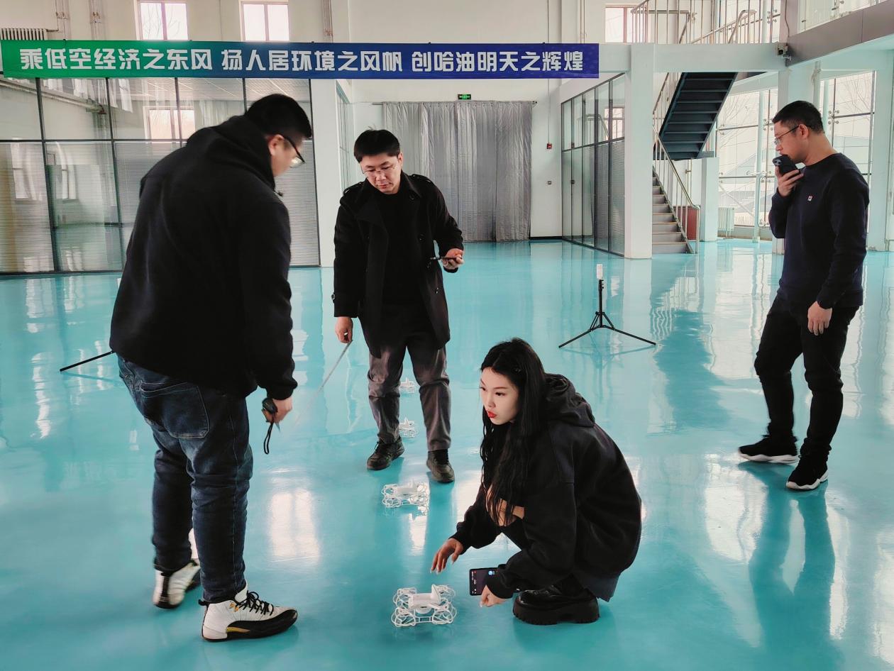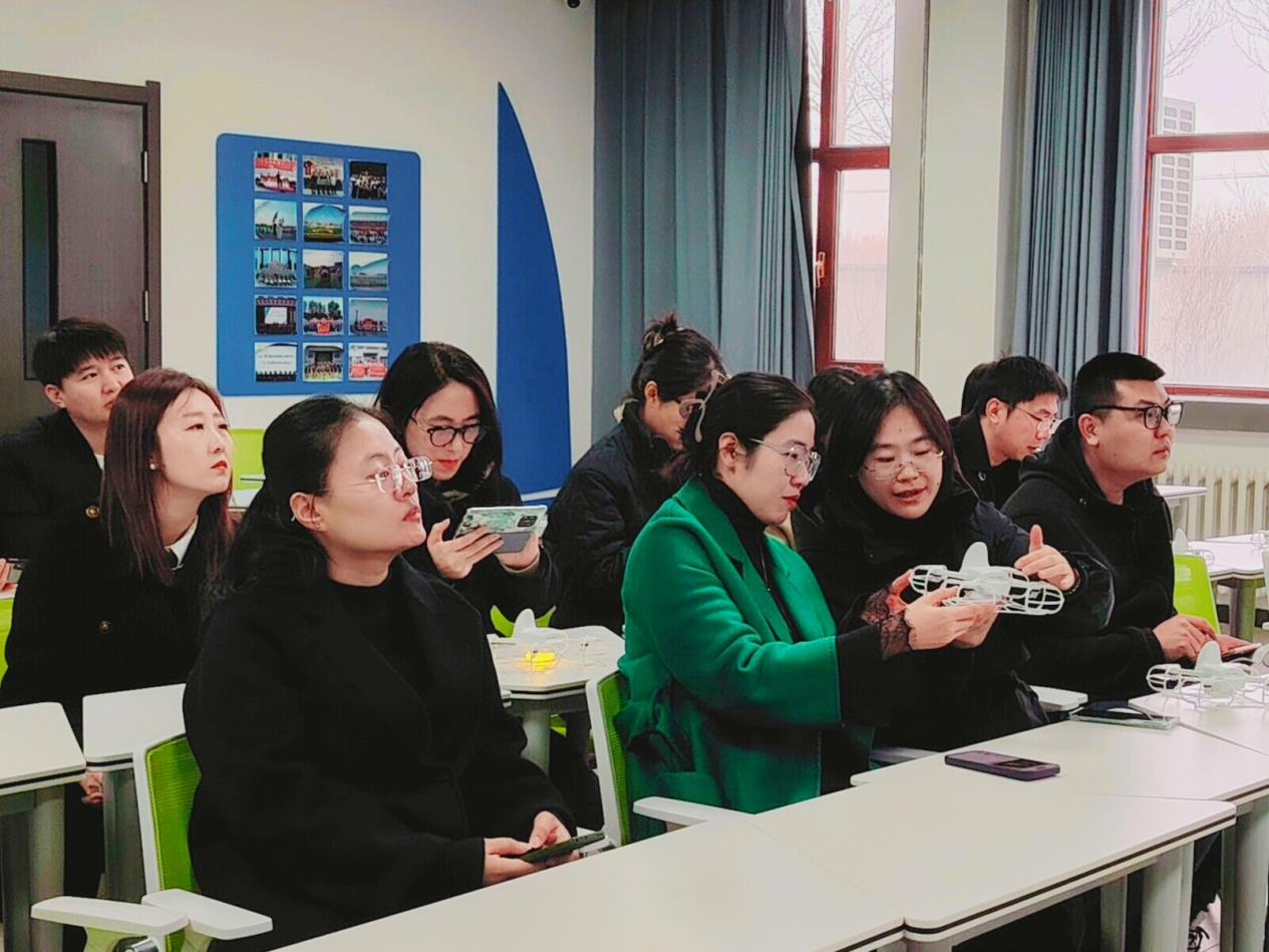 培训过程中,哈尔滨达尚科技有限公司的培训师凭借其丰富的行业经验和专业知识,通过线上直播,深入浅出地讲解了Fylo无人机电脑scratch PC端和Fylo APP端编队的操作技巧,以及安全注意事项。理论授课结束后,培训进入紧张而精彩的无人机编队实际操作环节。在智能建造综合实训馆内,培训师指导教师们进行无人机编队飞行操作。