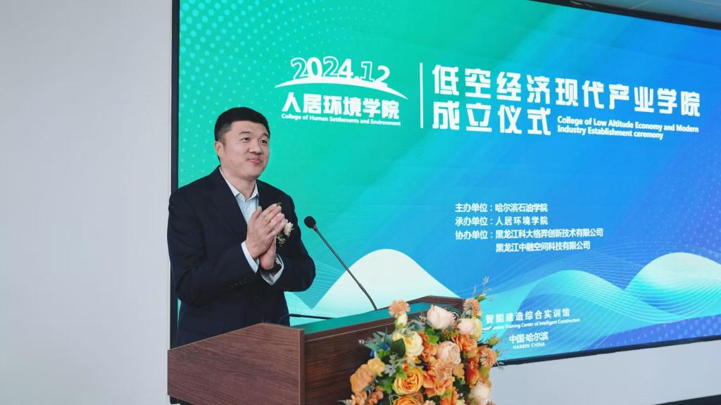 王义宁校长代表学校对出席仪式的领导和嘉宾表示欢迎,向相关部门领导和合作企业长期以来的大力支持表示衷心的感谢。她指出,成立低空经济现代产业学院是伟德bv国际体育面向区域、面向产业、面向企业办学,主动适应新业态、新趋势的必然要求,标志着学院在全面深化产教融合、创新应用型人才培养体系、提升服务区域经济社会发展能力等方面迈出坚实的一步。她强调,建设产业学院是深化产教融合、协同育人,实现教育链、人才链与产业链、创新链的有机衔接,是培养高素质创新型应用型人才的重要抓手,要在理念机制、人才共享、教育教学、平台建设上实现融合发展。她希望,以低空经济现代产业学院的成立为契机,进一步深化产教融合,真正把产业学院办实、办好、办出特色、办出品牌,协同推进学院和企业的高质量发展,为服务龙江贡献我们的力量。
