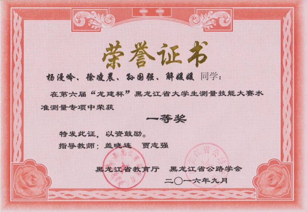 第六届“龙建杯”全能三等奖