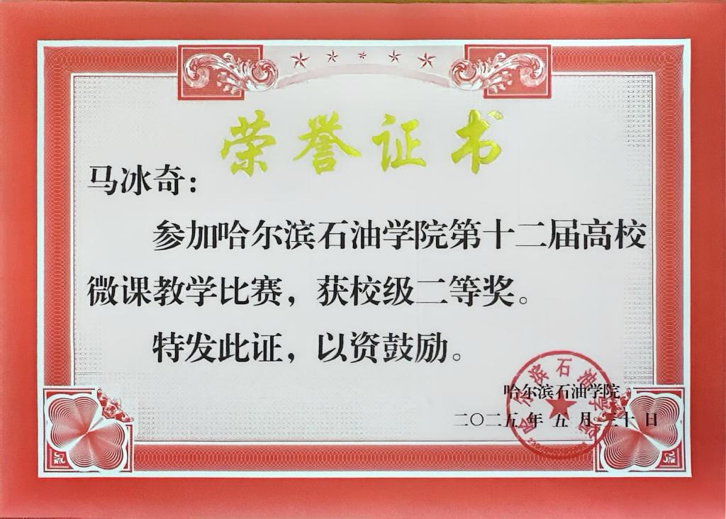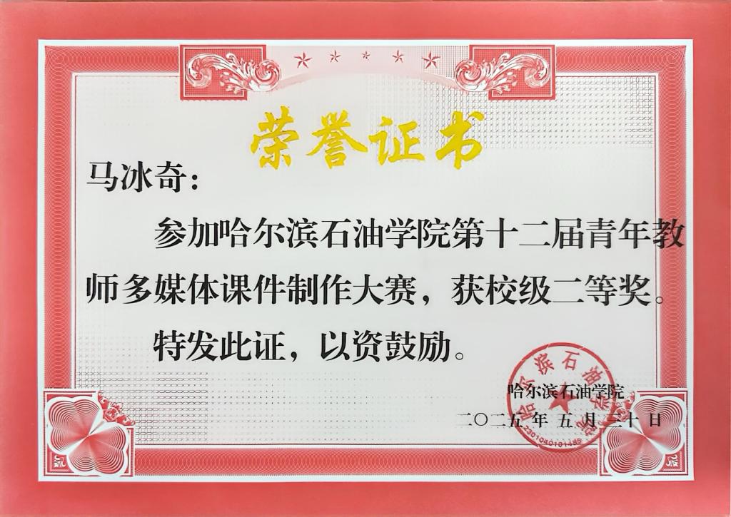 马冰奇老师荣获伟德bv国际体育第十二届青年教师多媒体课件制作大赛二等奖